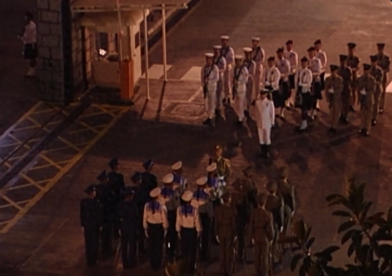 在完成最后的交接仪式后,23时59分55秒,艾利斯中校走出威尔士军营营门,谭善爱中校带领驻港部队进驻威尔士军营。