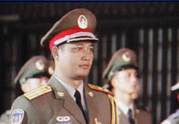 23时54分,中方卫队在张洪涛上尉的指挥下,迈着整齐划一的步伐在威尔士军营的西侧就位,谭善爱在最前排。当他带领卫队走进军营院子时,无数闪光灯不断地朝向中方卫队,照的人很难睁开眼。可他依旧双目有神,迈着从容的步子登上礼台。