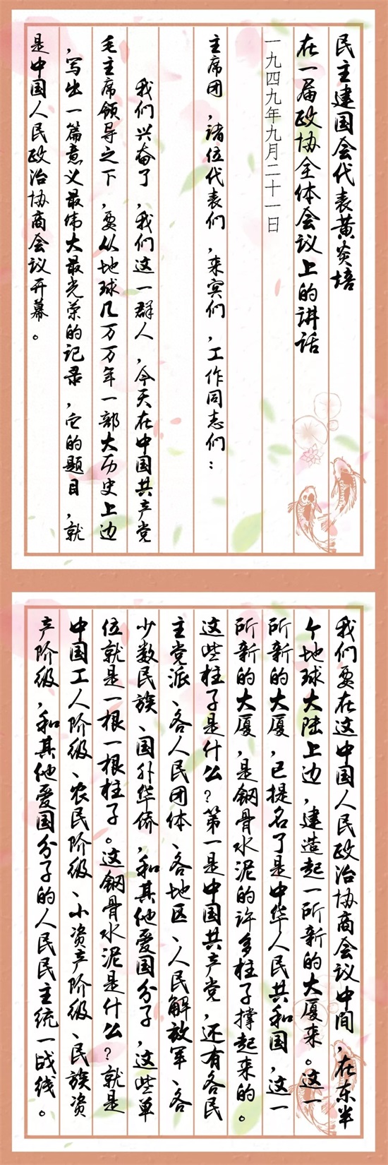 这位毛主席尊称为“黄任老”的著名民主人士,曾经在中国人民政治协商会议第一届全体会议上作了以下精彩的讲话。