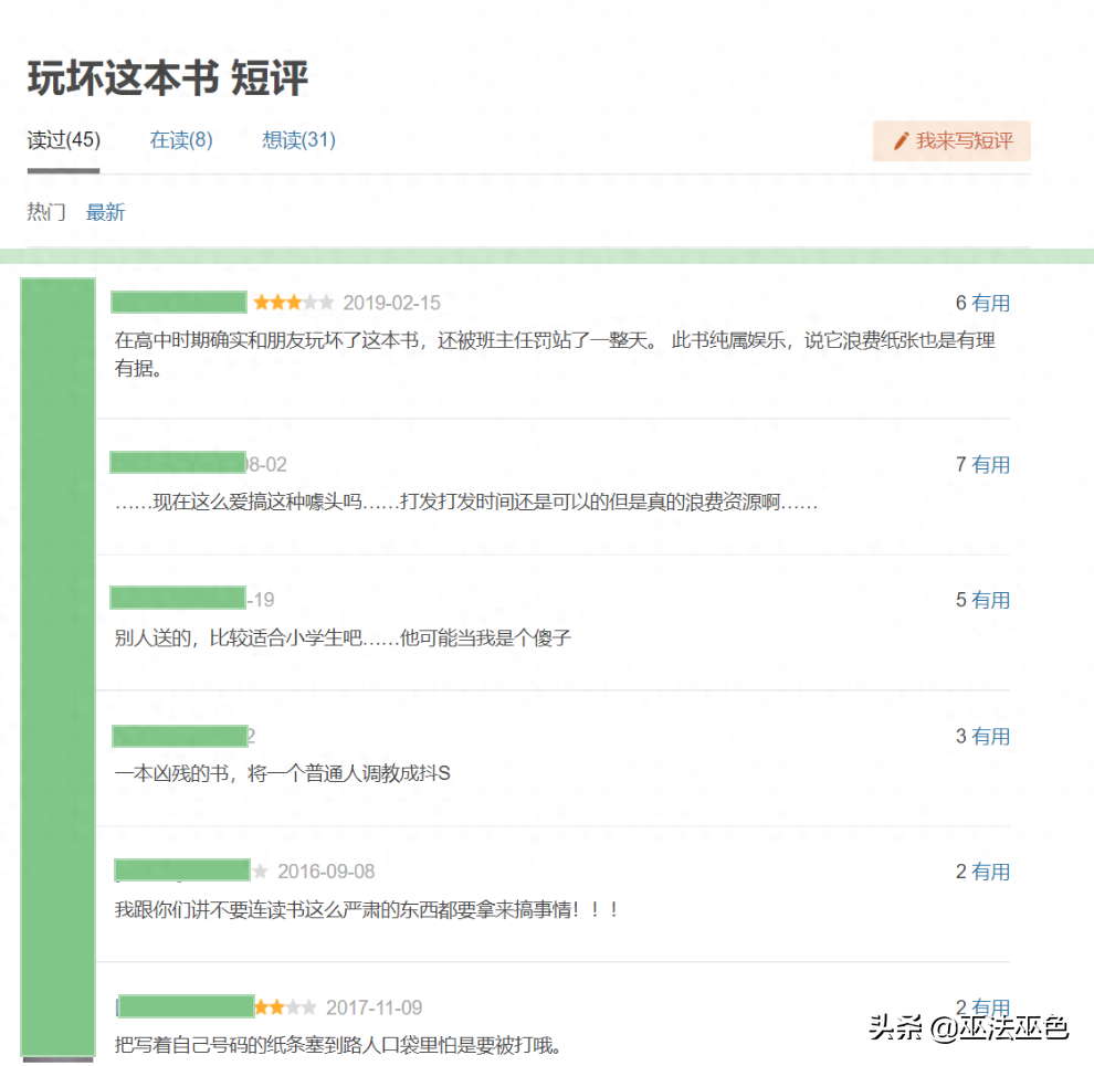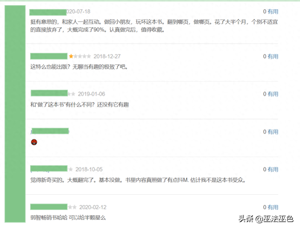 看到这里,买了书的小伙伴,是不是有千百万个后悔呢?近50 个评论中,只有四五个说好的:玩后值得收藏,我觉得很有趣啊,好好玩,压力大的强烈推荐。