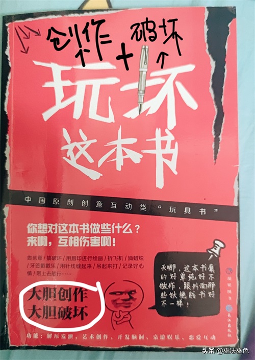 《玩坏这本书》,我现在玩了三分之一,它像是我的私密日记,像是我的人生回忆录,在我玩它的过程中,它和我相融在了一起,它拥有了情感和沉淀,吸收了快乐和悲伤,可以讲很多故事,它被我玩活之后,变得多彩而温暖,严肃而有力量。