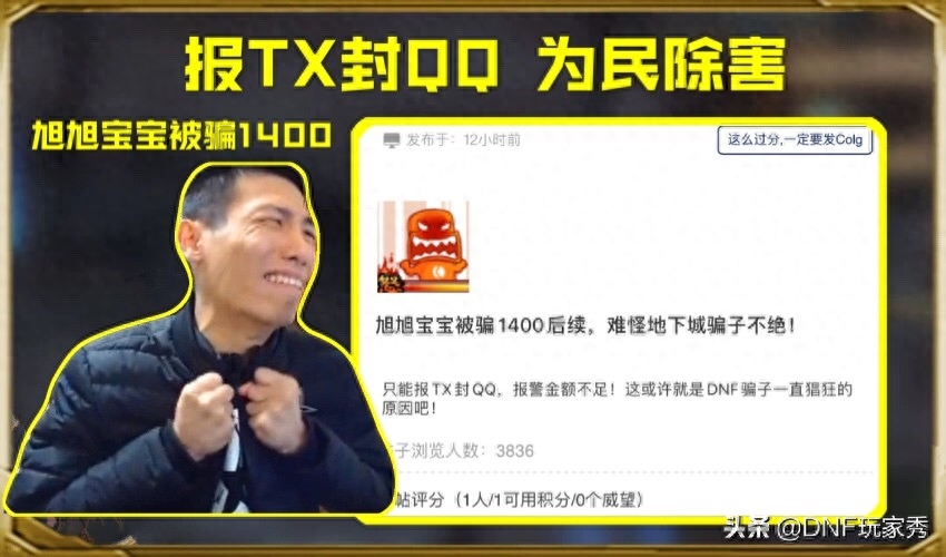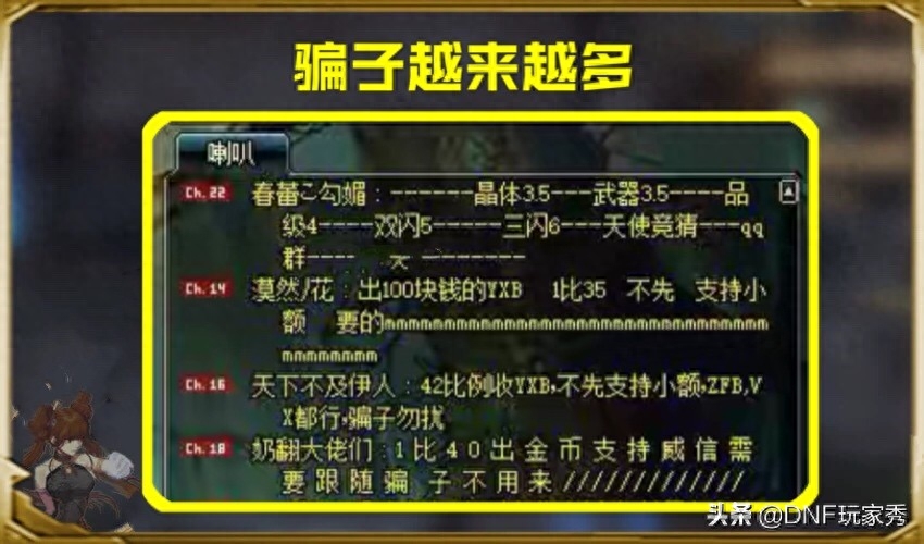 作为DNF玩家,相信每一位玩家都被骗过,但是,由于每次被骗的金额不多,要么是一件装备,要么是几百万金币,每次被骗都是自责太大意,而没有想过如何给予骗子打击,以致于在游戏中,骗子是越来越多。