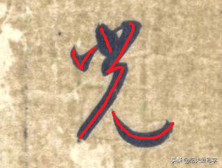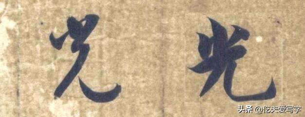 "光"字草书先写上面中间的短竖,然后写左右两点,右点(短撇)与下面的横和长撇连为一笔,最后的