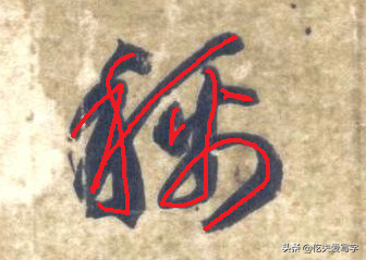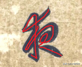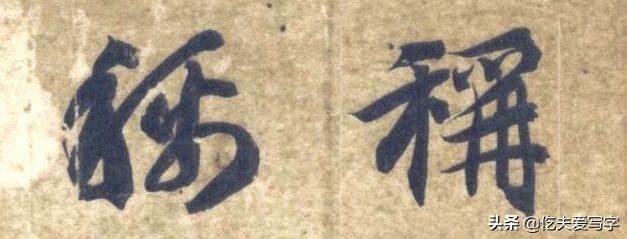"禾"字旁的草书写法在前面讲"秋"字时已经讲过,撇和竖钩连成一笔,像写"S"形,钩上去之后连写两横;繁体写法"稱"右边的部分在草书中,上面的撇画为了保持跟左边最后一笔的连贯性,从左向右写变成一横,然后写左右两个点(或者连成一短横,如孙过庭),最后中间一竖通下来并顺时针旋转出锋,代表剩余部分: