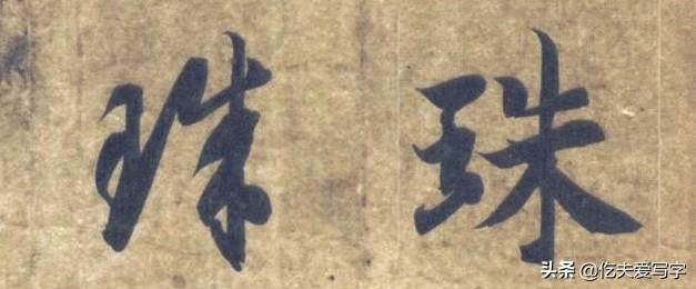 "珠"字左侧的"王"字旁实际上是"玉"字旁,从上面智永的真书写法也能看出来,其实