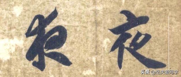 "夜"字要想写好看,上面的长横必须呈左低右高之势,这是由其字形结构决定的