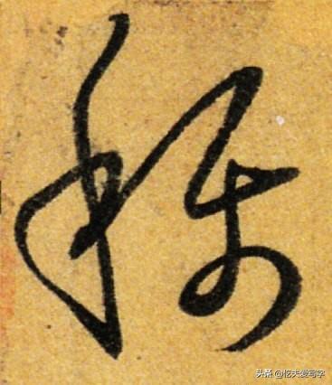 ,所以在草书中第一笔由右上起笔向左下行笔,即化横为撇,之后写竖钩,然后写撇提并与右边的"夕"字连写,"夕"字里面的点用一个圈代表(这是由上笔与下笔的位置和笔势决定的),最后写一个反捺:
