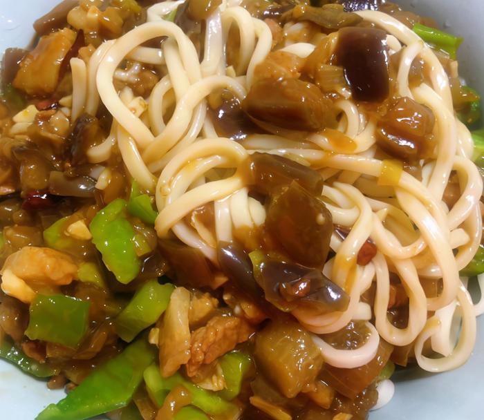 家常美食——茄子肉丁打卤面,简约不简单,您也试试看