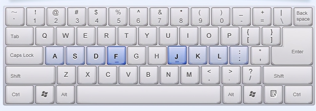 另外要注意F和J键上会有个小凸起,这是便于盲打时的手指的定位。其次,要正确掌握手指的分工。