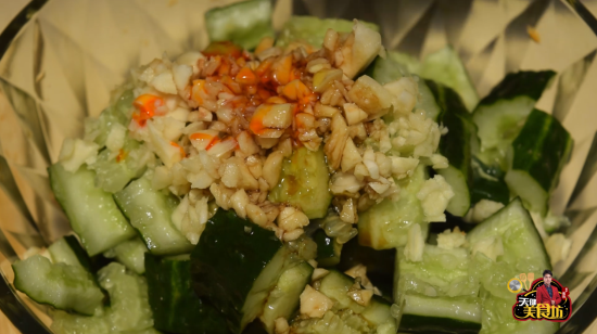 说到凉拌黄瓜,相信不少的朋友都喜欢吃,经常在糖水店小吃店,点上一杯奶茶,一盘凉拌黄瓜,吃得挺过瘾的!先说说黄瓜:黄瓜味甘,甜、性凉、苦、无毒,入脾、胃、大肠;具有除热,利水利尿,清热解毒的功效;主治烦渴,咽喉肿痛,火眼,火烫伤。还有减肥功效。黄瓜皮所含营养素丰富,应当保留生吃。但为了预防农药残留对人体的伤害,黄瓜应先在盐水中泡15-20分钟再洗净生食。用盐水泡黄瓜时切勿掐头去根,要保持黄瓜的完整,以免营养素在泡的过程中从切面流失。另外,凉拌菜应现做现吃,不要做好后长时间放置,这样也会促使维生素损失。