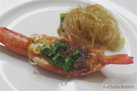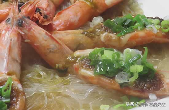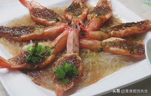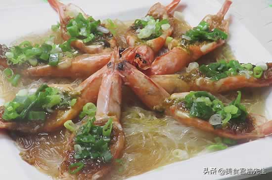 【食材】:大虾 500克,粉丝 2把,大蒜 8个,小葱3根,酱油,蚝油,白糖,香油。
