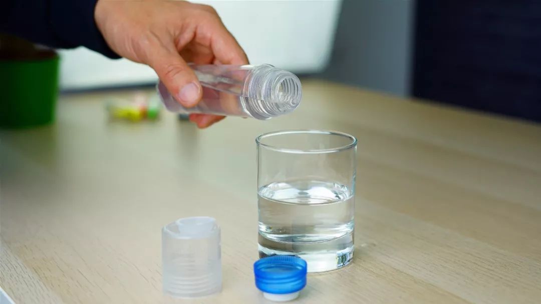 2.往水杯中倒入约50ml清水以及25ml胶水。