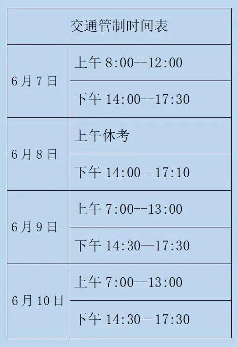 管制时间内禁止考务车辆以外的一切车辆驶入上述路段。
