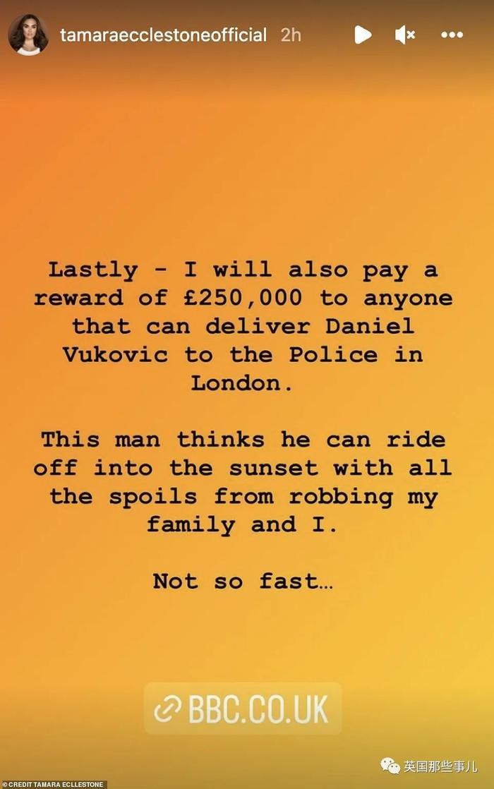 而且,任何能够将此案唯一的一位逃犯——武科维奇(Daniel Vukovic)交给伦敦警方的人,塔玛拉还会额外支付25万英镑。