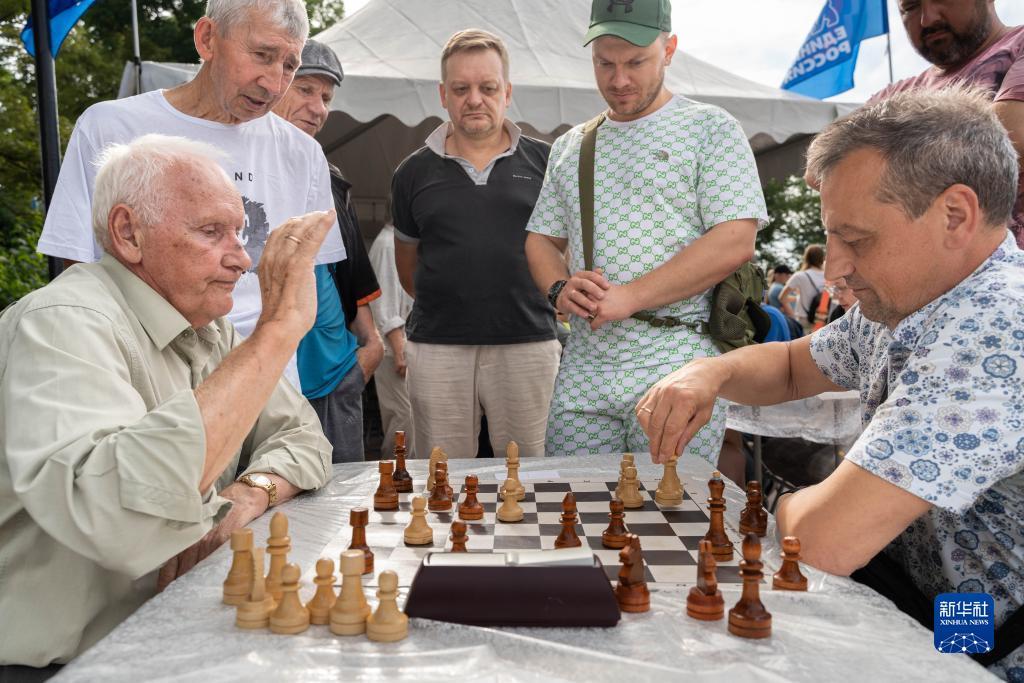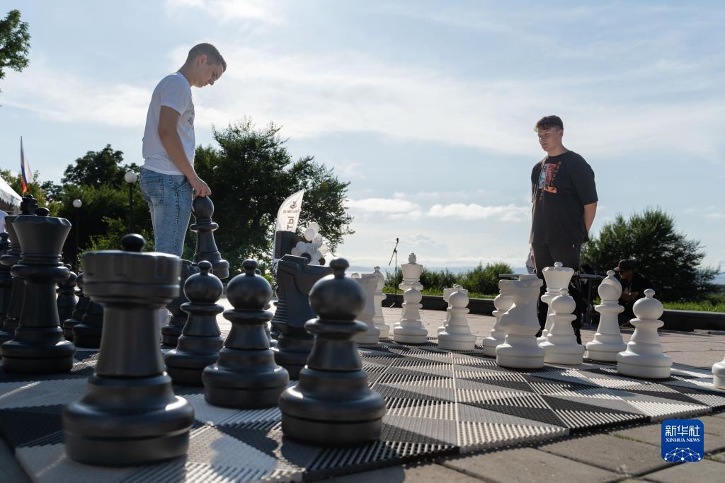 7月20日,在俄罗斯远东城市符拉迪沃斯托克,人们参加街头国际象棋比赛。当日,符拉迪沃斯托克举行街头国际象棋比赛。2019年12月12日,联合国大会正式宣布7月20日为世界国际象棋日,以纪念国际棋联于1924年7月20日在巴黎成立。新华社发(郭飞洲 摄)