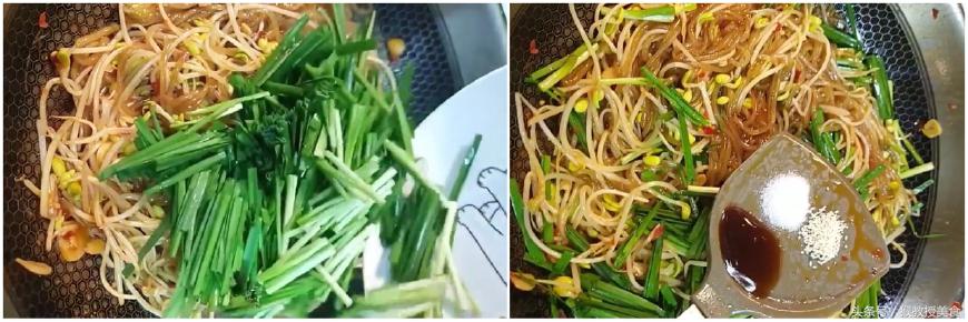 【制作食材】黄豆芽、红薯粉条、韭菜、大蒜、豆瓣酱、