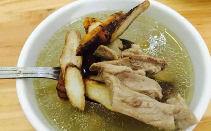 大力薯外皮粗糙,但里面是雪白的肉质,除了用来制药以外还可以作为食材,当地人用牛大力,五指毛桃来煲汤喝,不仅味道鲜美还大补,有补虚润肺、强筋活络、养肝助阳,养肾补虚的良方。听老人常讲吃过牛大力汤后,会拥有牛一样的力气。许多中成药厂生产的壮腰健肾丸,里面的成分就有就牛大力,因为牛大力具有补肾的效果,因此把它成为“牛大力”倒也不足为奇了。(图为牛大力煲汤)