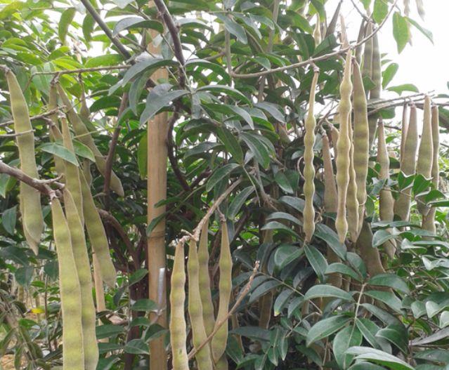 牛大力又叫倒掉金钟、猪脚笠、山莲藕,其株型长达三米,其根茎粗壮稍粗糙,圆柱状或是呈纺锤体状连成一串,可深达地下一米,俗称大力薯。大力薯全身是宝,根含有大量蛋白质、淀粉质及生物碱,入药主治腰肢劳损、风湿性关节炎,肺结核、肝炎、肾虚及风湿骨痛等症。叶子用来制茶,种子及果壳均可以入药。牛大力可以化解烟毒对于吸烟人士,经常进入厨房的主妇常吃牛大力能有润肺止咳。(图为牛大力)