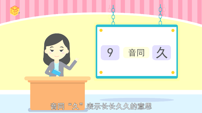 它代表的数字是9,音同“久”表示长长久久的意思。99是久久的意思,189是一辈子,6179是友谊长存,1199是友谊长久。
