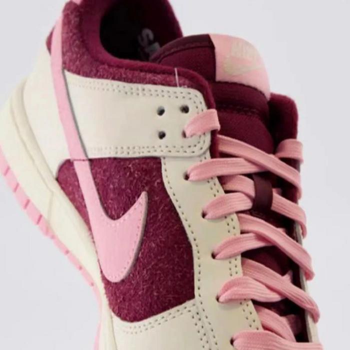 算上这双全新的AF1,明年的情人节限定配色可谓是阵容异常壮大,除了最早曝光的大AIR、Tranier之外,还有两双Dunk Low也是蓄势待发。