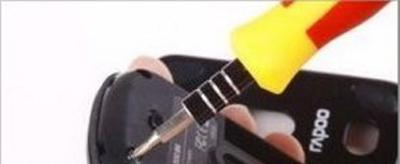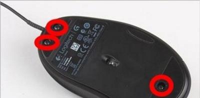 4、机械鼠标,拔除USB插头。无线光电鼠标,抠出干电池。反过来,拆卸固定螺丝。
