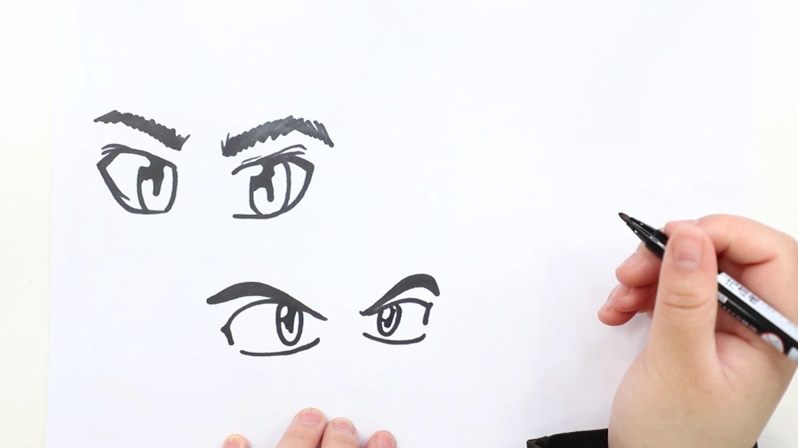 2、我们再来画第二种男生的眼睛,先来画出眉毛,男生的眼睛要画的大一点;