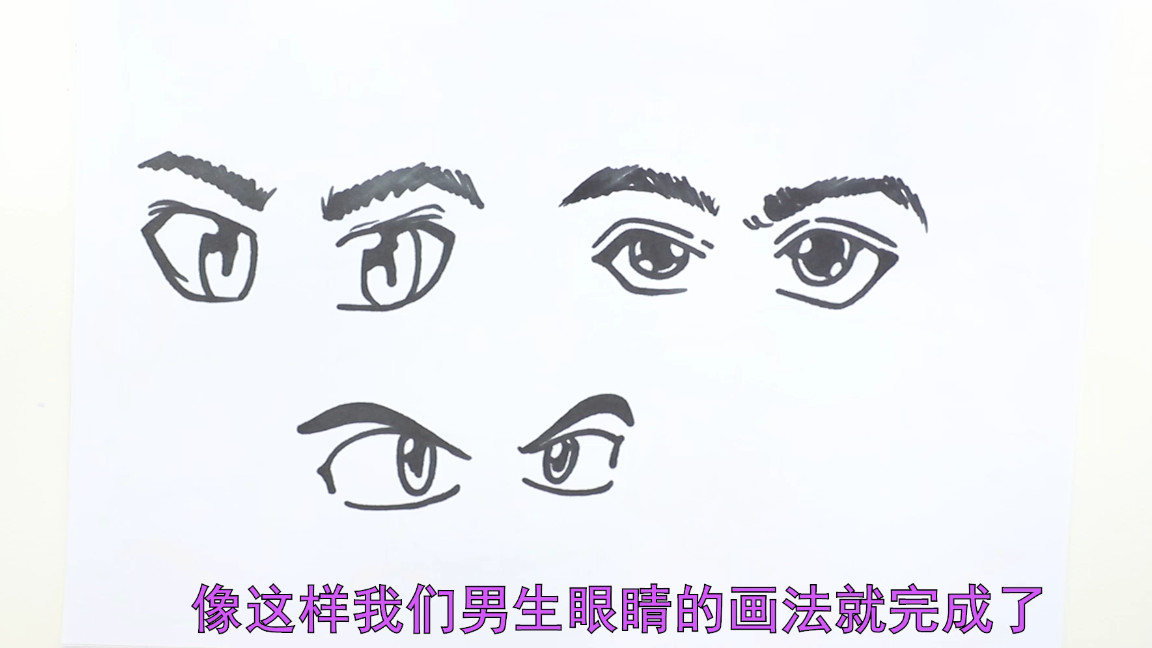 3、第三种男生的眼睛,瞳孔我们要画的圆一点,要给眼睛画上高光,画上眼皮。