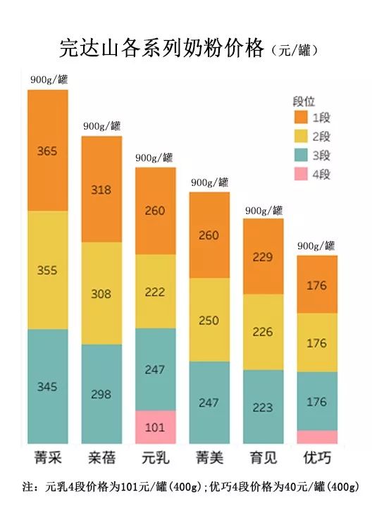 在段数划分上,元乳、优巧划分为1-4段,其他系列均划分为1-3段,适用年龄都很常规。
