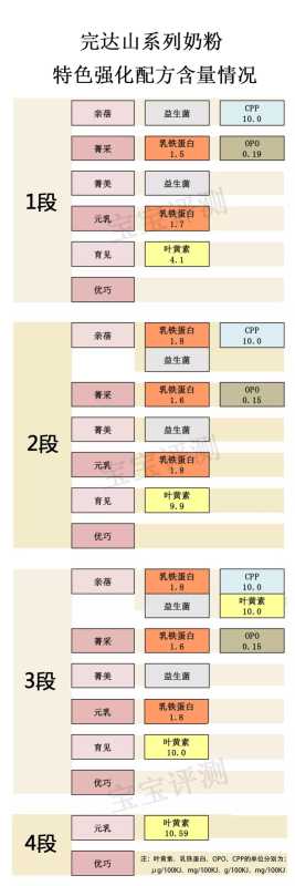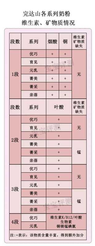 等多种维生素和矿物质。不过因为4段奶粉针对的是3岁以上的宝宝,其饮食已经多样化,而且4段奶粉目前并没有相关标准,所以这里只是提醒大家注意一下。