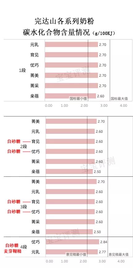 育见和优巧2段就添加了白砂糖,这点要注意一下