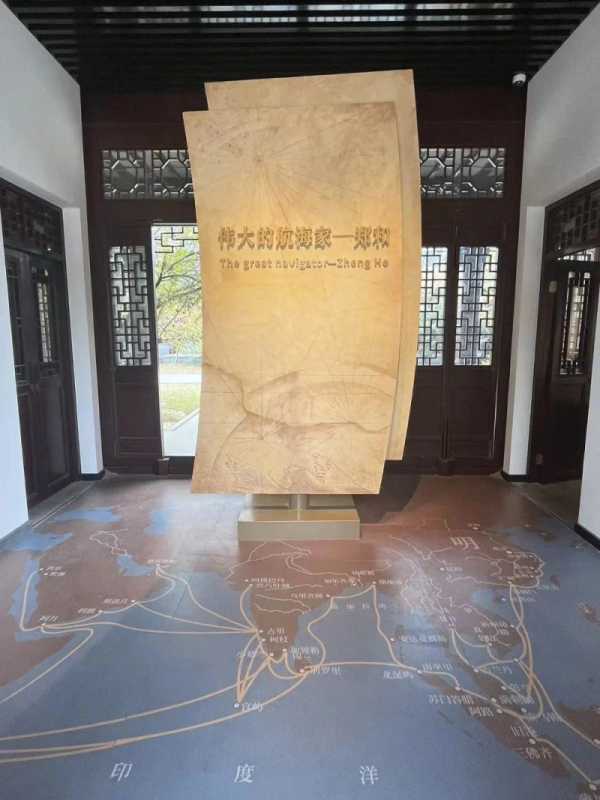 而郑和文化宫里除了一篇篇关于郑和的辉煌事迹,还有当时郑和下西洋船只中的一些遗迹,比如木锤、石球、木桩,以及与一些国家的友好界碑。