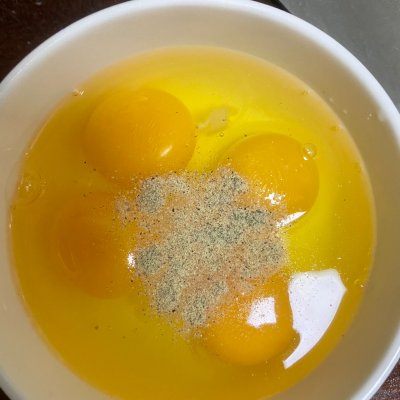 3、4个鸡蛋+半勺白胡椒粉+1勺清水+少许盐
