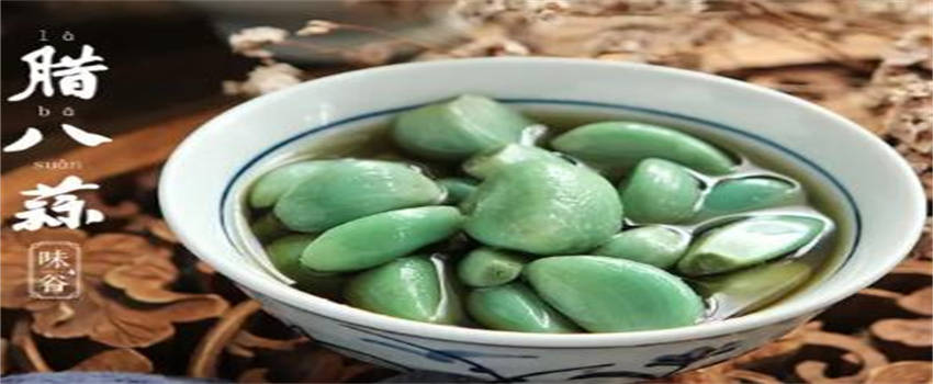 腊八蒜也是属于北方的传统美食,到腊八节这天家家都会腌制一些腊八蒜,腌腊八蒜也非常简单,把蒜去皮以后放在干净的玻璃瓶子里面,加上适量的白糖和米醋,放在温暖的地方等蒜变成绿色就可以食用了。