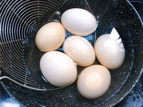 这个过程只需要4分钟,煮的时间不宜过长,否则鸡蛋就会变老,蛋黄变青色。