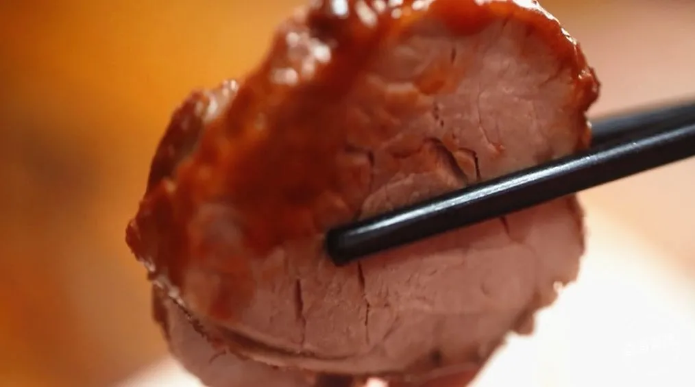 刚出炉的叉烧,裹着诱人的酱色。