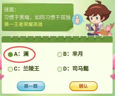 谜面:习惯于黑暗,如同习惯于孤独。猜一王者荣耀英雄