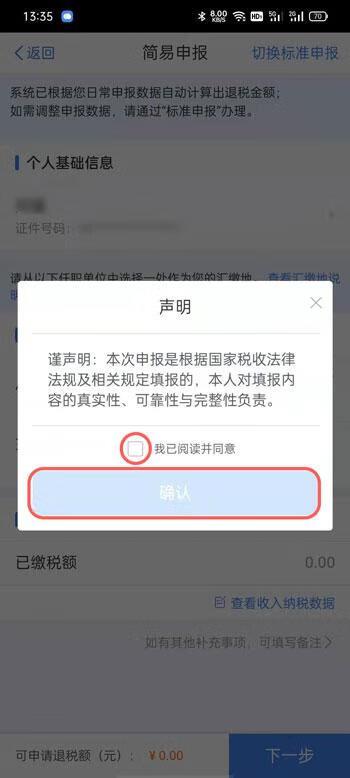 6、在弹出的窗口中,勾选【我已阅读并同意】,点击【确认】按钮即可完成申报提交;
