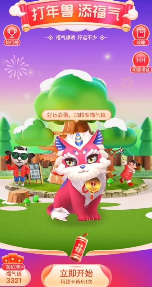 1、打年兽活动入口将于集齐合成五福后开启,开启打年兽为新年添福气