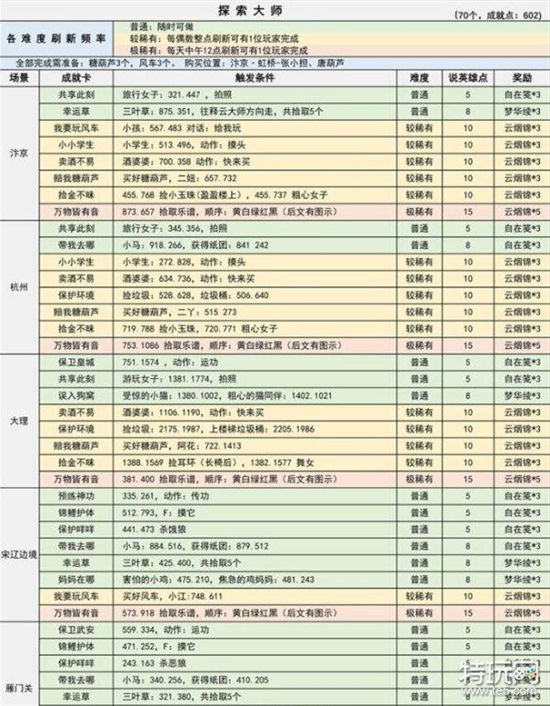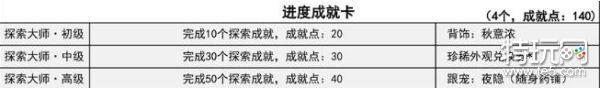 2、完成70个探索任务,一共可以获取602成就点,另外,4张进度成就卡有140成就点。整个探索任务的成就点:742点。