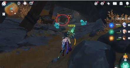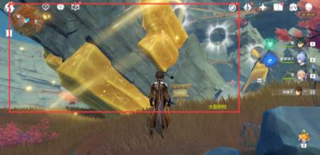 用双手剑角色的普通攻击或岩元素角色的元素战技击打普通宝箱下面的大型的岩柱。