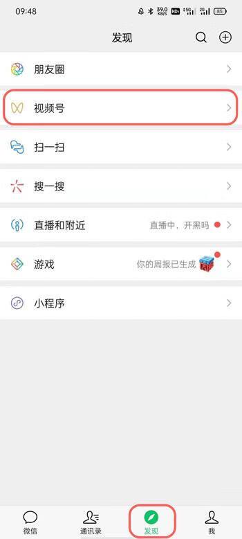 2、在【发现】页面找到上方的【视频号】,进入微信视频号中;