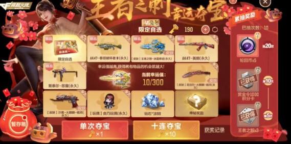 与此同时,玩家累计参与活动满足指定次数,即可100%获得指定奖励。其中,玩家累抽5次可领取3个“王者之骰”,累抽 10次可领取1000点“赏金积分”,累抽20次可领取5个“轮回币”。