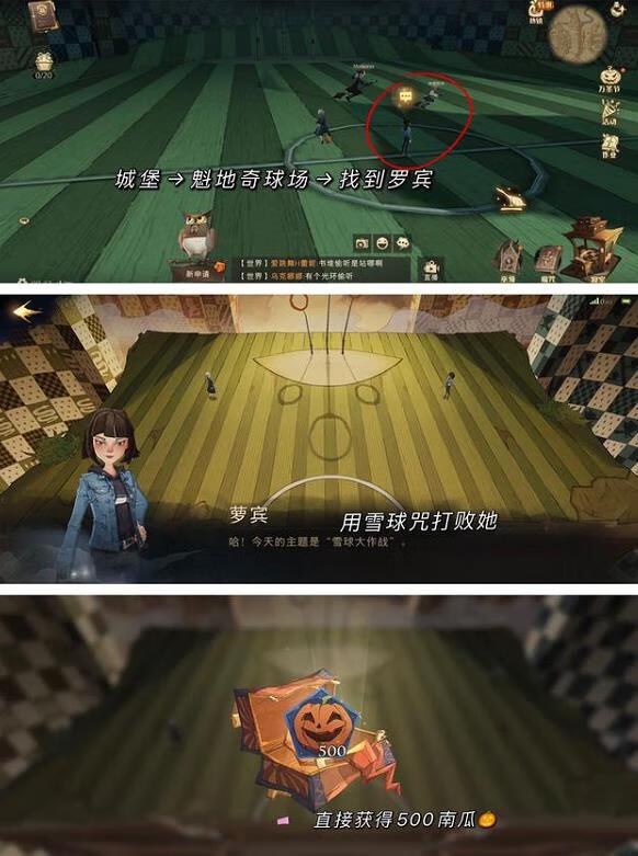 4、玩家需要在城堡上空的魁地奇球场找到罗宾,并且与其进行对话并且进行对战获得400南瓜;
