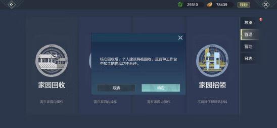 Tips:使用家园回收功能只会回收核心建筑物,比如家具、灵器,而城墙、地皮以及工作台中的加工物品不会返还给玩家。回收后的灵器和家具在家园招领中。