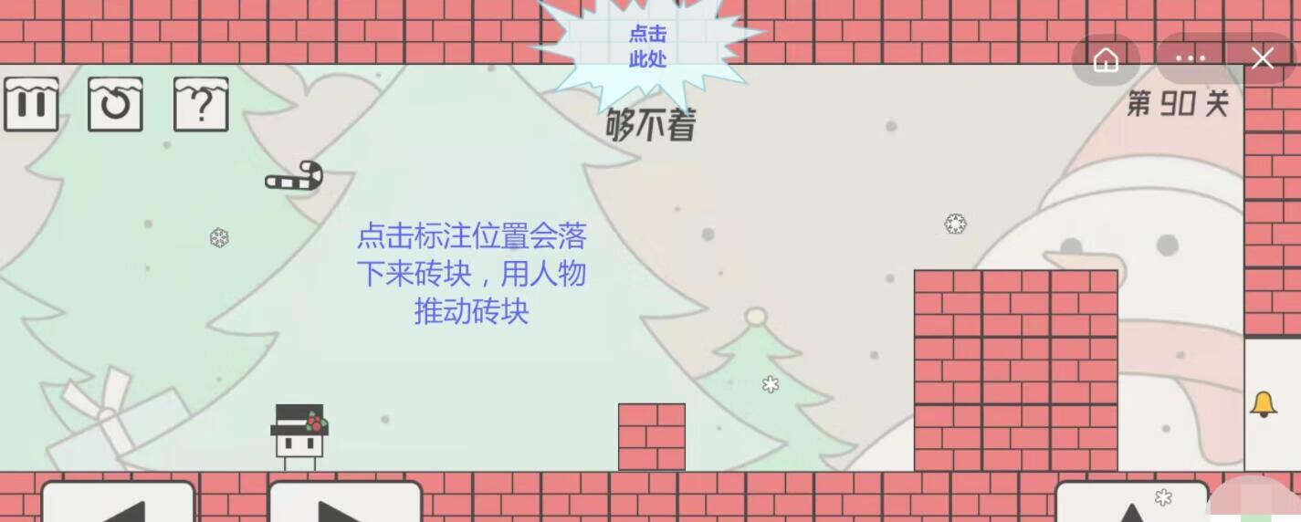 点击标注位置会落下来砖块,用人物推动砖块