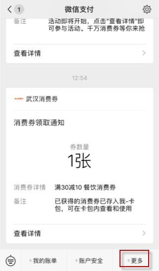 1、打开微信公众号微信支付,点击右下角的更多;
