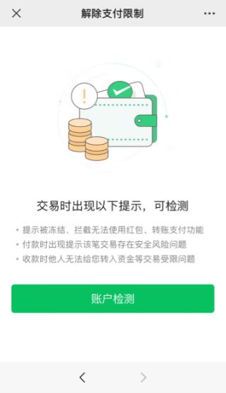 5、进行账户检测即可解除支付限制领取红包。