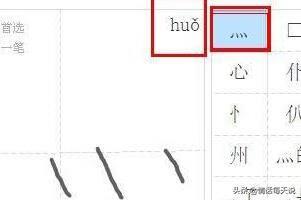 1.用手写输入,单字手写,直接写上这个字就能看到,灬(huo)