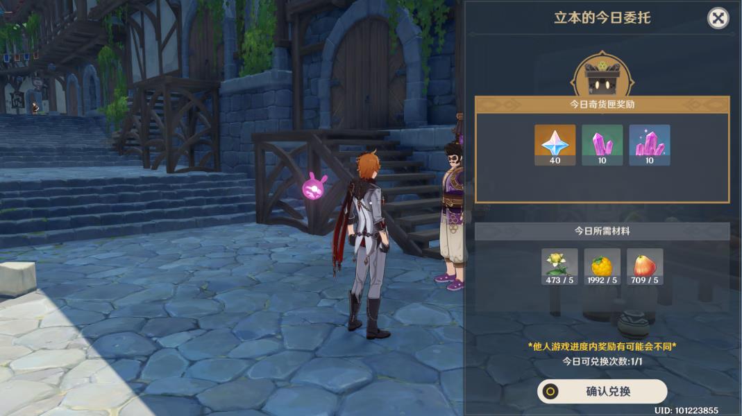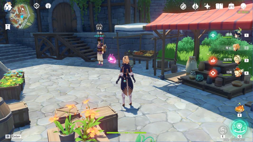 第三天的商人"立本"还是位于蒙德城进门右侧。