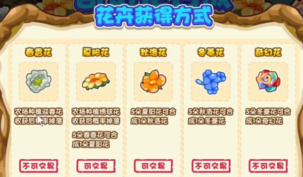 2、农场种植绣球花收获后概率掉落夏阳花 5朵春香花可合成1朵夏阳花